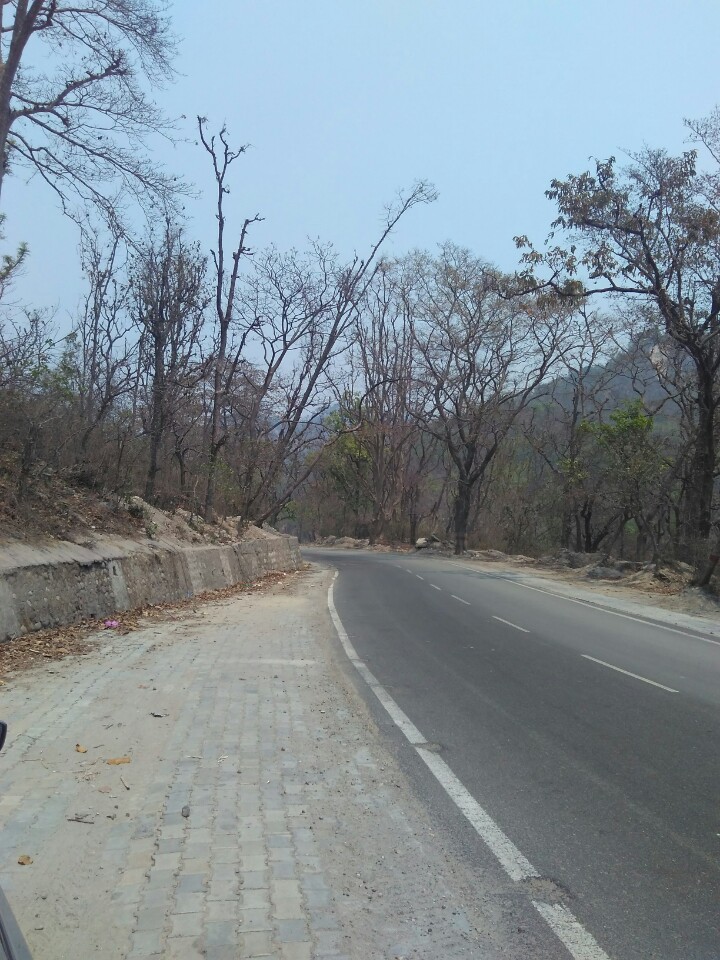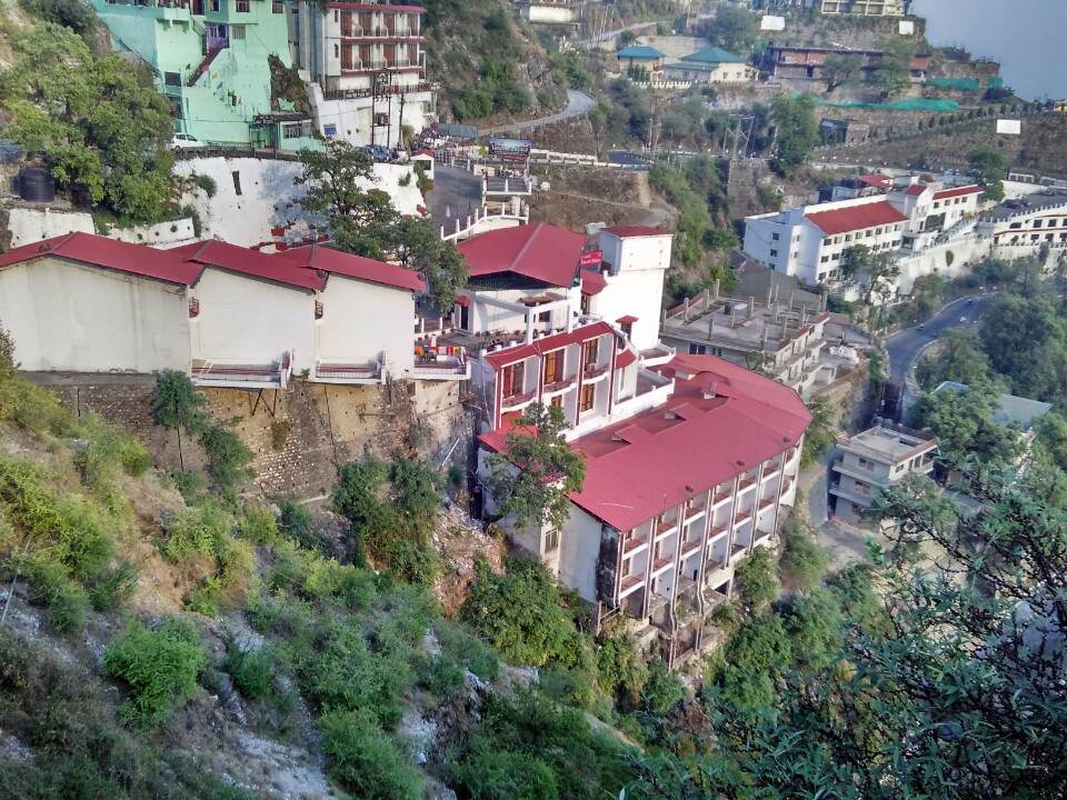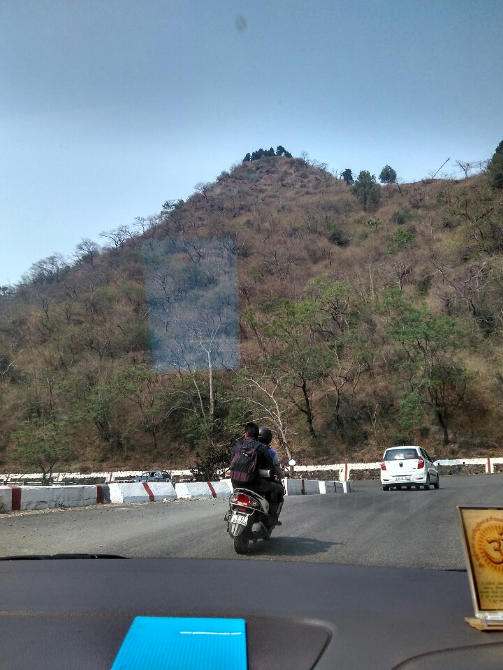 After a lazy breakfast, we resumed our drive to Mussoorie. By then the traffic density had increased but we were still able to make good pace till well beyond Muzaffarnagar, where the toll road ends. Thereafter, the going was a bit slow and in places the road was narrower, as the double-lane highway construction is not yet completed and there are still stretches where one is forced to crawl on a sinle-lane highway. Nevertheless, we managed to reach Roorkee city in good time and turned left from there towards Dehradun. The drive from Roorkee to Dehradun is a little painful, passing through small towns which sometimes force you to come to a complete halt. As you gets closer to Dehradun, you need to pass through the foothills and forest area of Mohand, with gentle hills that are not too steep, but here, for a few kilometers, the road quality is quite bad and repairs are in progress. The road is quite scenic, though, with a forest on one side and a dry riverbed on the other. As you get closer to Dehradun, at the end of the Mohand road lies a tunnel which is quite narrow and forces traffic to come to a complete halt. From both sides of the tunnel, traffic has to be regulated so that each direction gets to cross the tunnel in an alternated single line. What makes matters worse is the fact that there is the famous Daat Kali Temple built right above the tunnel, which attracts a large number of devotees who park on the side of the narrow road just outside the tunnel. There is also a constant stream of visitors crossing the road on foot so one has to be very careful in this stretch.
